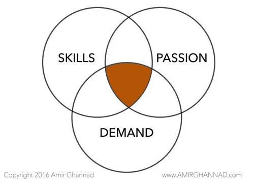 Evaluate your current career for three key factors, namely passion, skill, and demand for your product or service. As depicted below, the most fulfilling careers are the ones that are in line with your passion and skills, producing a marketable product or service. If any of them is missing, you could either choose to take the indicated action or move on and pursue fulfillment somewhere else, but if you choose to hang in there, heed the words of Stephen Stills, “… if you can’t be with the one you love, … love the one you’re with…!